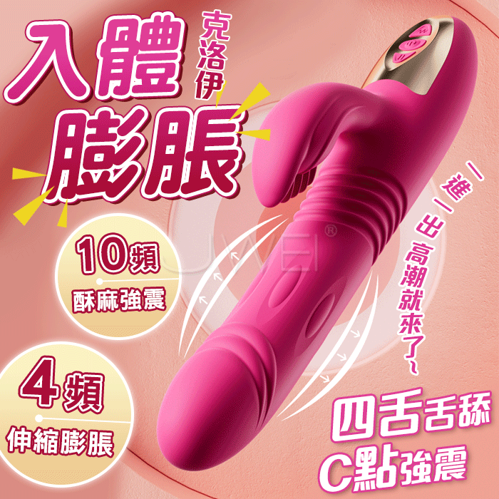 克洛伊.入體膨脹4X10頻強震舌舔伸縮G點按摩棒 (玫紅色)