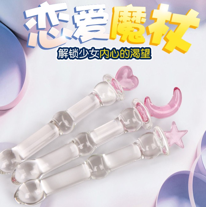 謎姬.戀愛魔杖 冰晶玻璃陽具後庭棒 水晶肛塞棒(中小號)