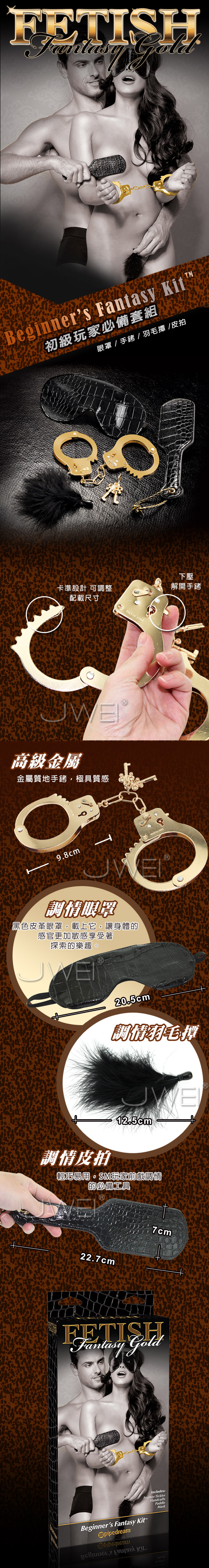 美國PIPEDREAM原廠在2014年最新推出的Fetish Fantasy Gold奢華金屬系列,在SM道具中加入了奢華尊貴的元素,使用了更多的金屬元件,再將金屬施以尊貴奢華的黃金色系,讓SM玩家在享受虐戀快感時,也能感到獨特的尊寵感,將Fetish Fantasy Gold奢華金屬系列穿戴在身上,猶如化身為古代歐洲貴族皇室,玩樂享受SM性愛樂趣,你是否已準備好要進入這奢華的貴族世界了,快來體驗這與眾不同的獨特尊寵感吧