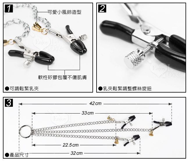 3乳夾旁各配置有一小風鈴造型(無聲音),可於裝扮增加視覺上的美感。