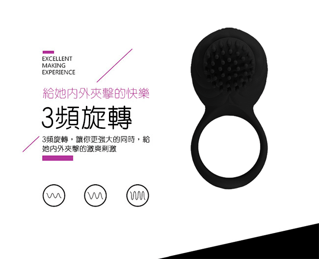 震動環部緊扣男生弟弟根部,精緻助勃又能感受震動帶來的強烈酥麻感! 3速旋轉讓女伴爽的不要不要的
