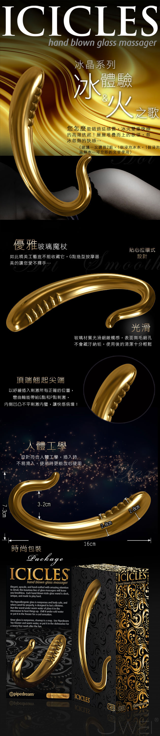 由美國成人玩具第一大廠PIPEDREAM推出的-ICICLES Gold Edition 系列 頂級冰晶玻璃按摩棒