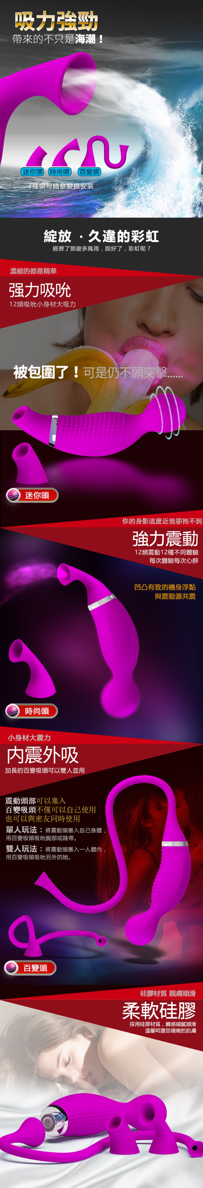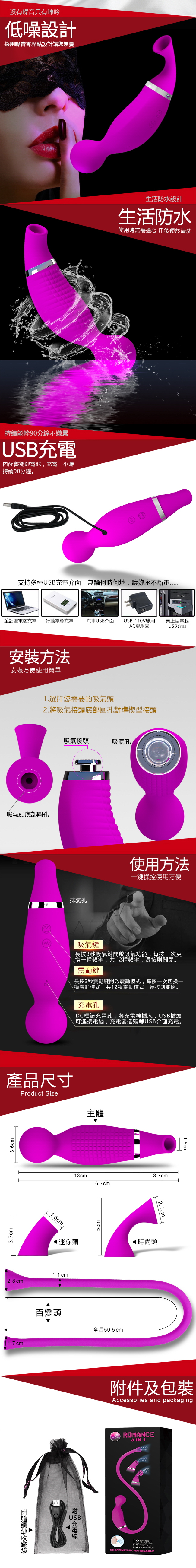 ►您現在的位置:首頁>ROMANCE‧3IN1內震外吸三頭一體多功能潮吹大濕棒﹝強震刺激+吞吐口交+USB充電﹞