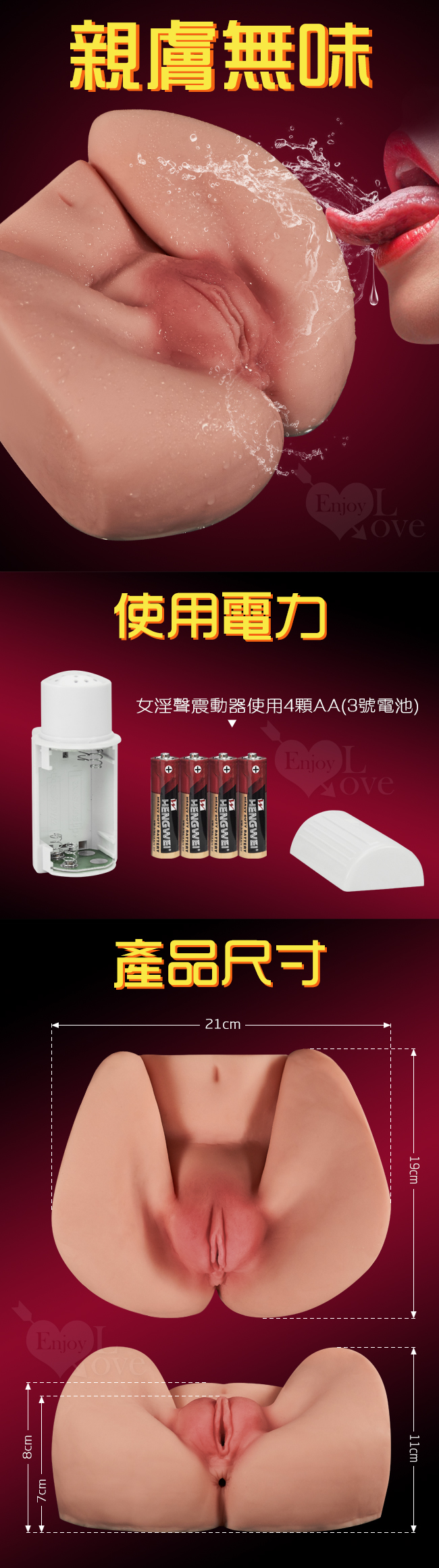 | 誘惑肥鮑‧肉感仿真雙穴雙交倒模發音震動自慰器﹝1920g﹞