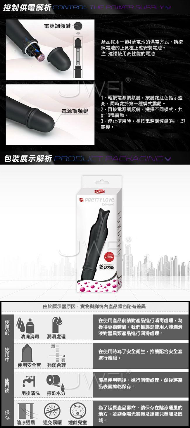 ■尺寸:詳如圖片所示 ■材質:矽膠 ■供電:1節4號電池 ■10段變頻 ■觸點雙震 ■深度防水 ■靜音低噪