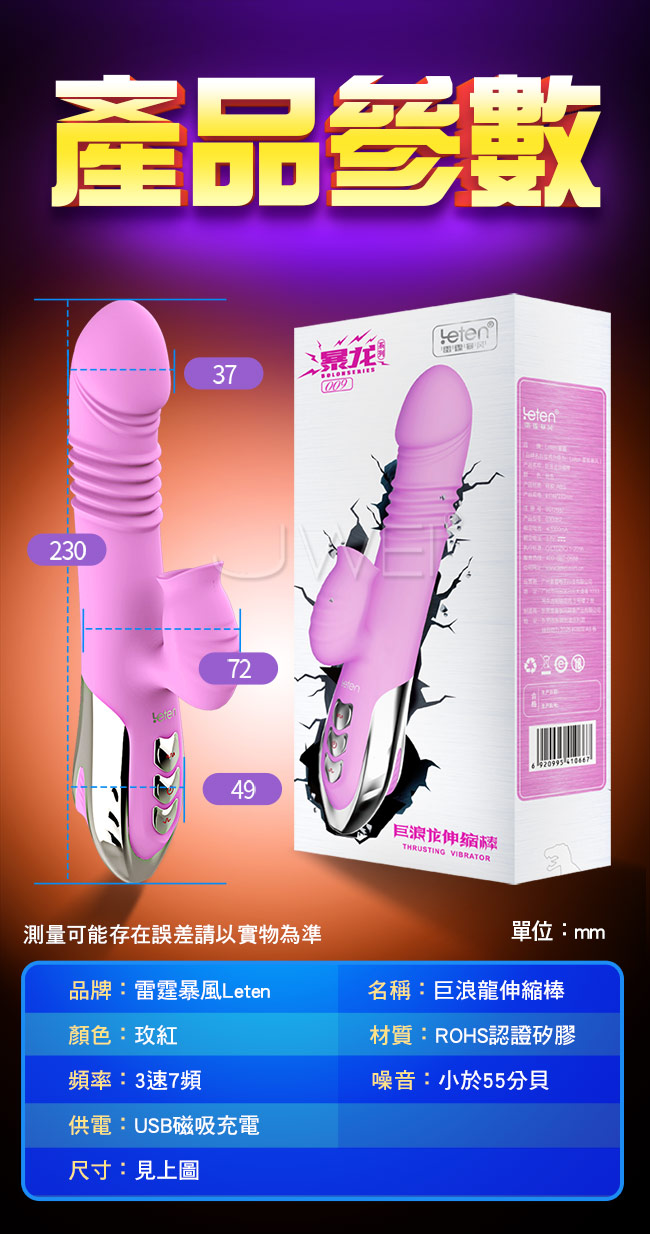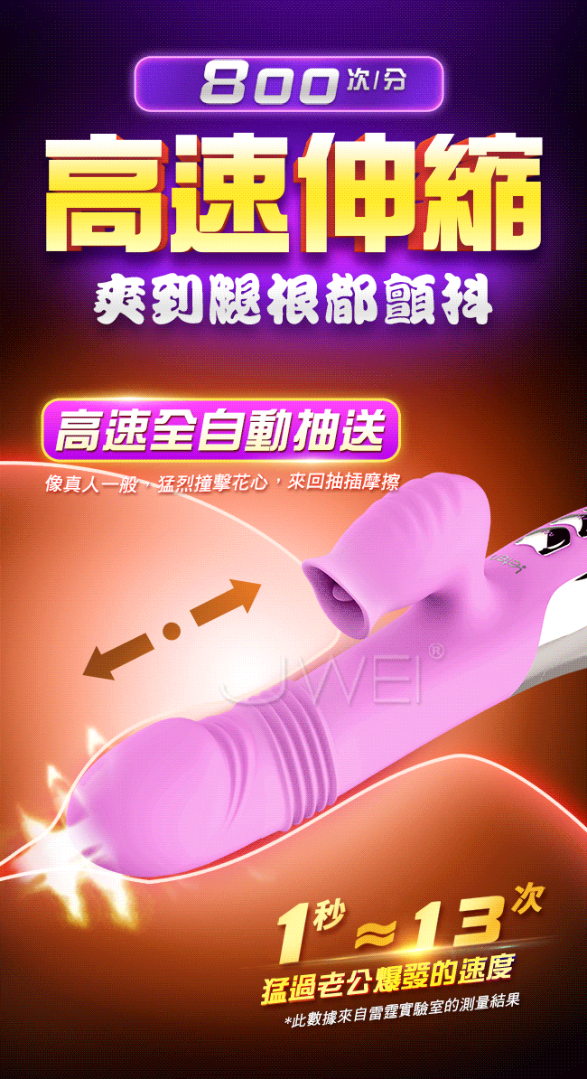 用過N根棒棒,沒有一根真的浪嗎?巨浪龍擁有5層浪紋摩擦及高速全自動伸縮抽插讓您爽到雙腿直顫抖。搭配仿真舌頭,在插入後小嘴含著陰蒂舌頭在裡面狂舔,又吸又舔享受雙重口愛快感。使用彈性親膚矽膠,觸感溫潤如真陽具般舒爽。內置全自動加溫設計,不用開關無需手動控制並在抽插過程中自動加溫,感受到滾滾熱浪的激情。