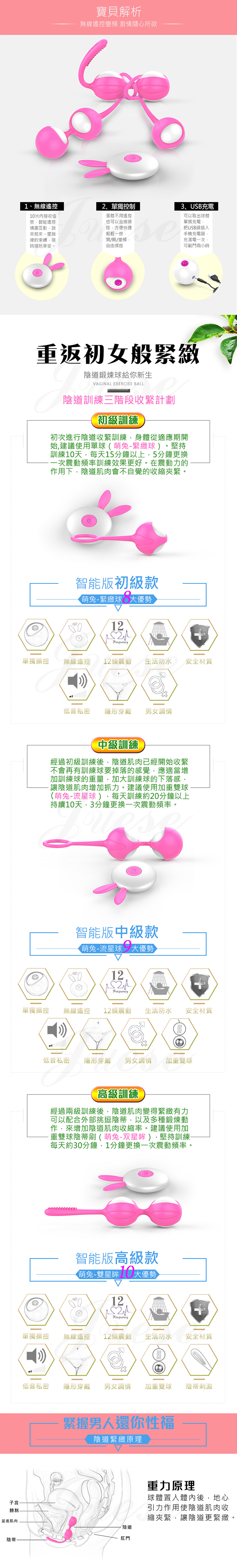 ►您現在的位置:首頁> 萌兔緊緻球 12段變頻矽膠充電遙控震動縮陰球-單球-玫紅