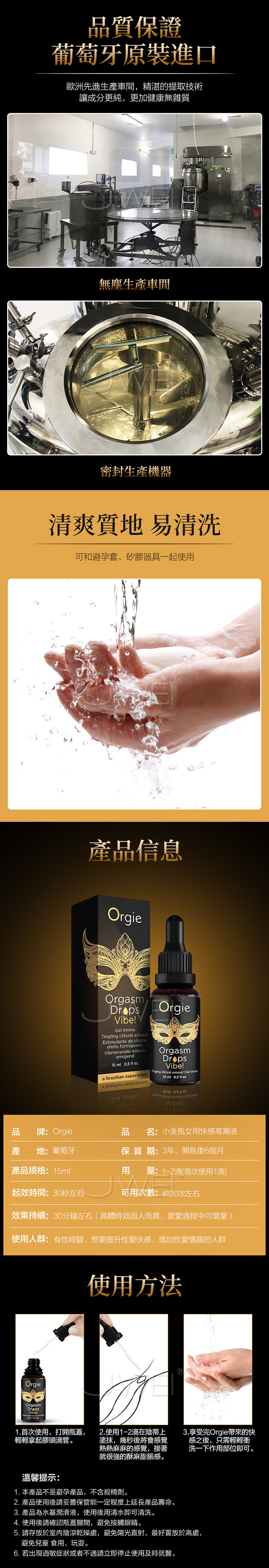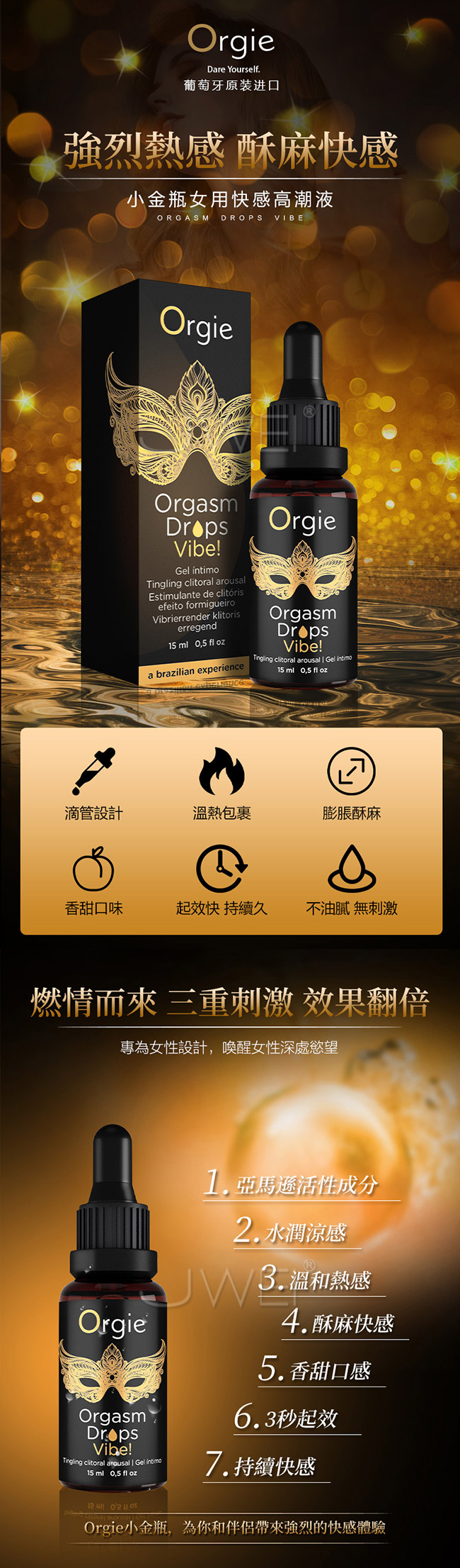 葡萄牙Orgie.Orgasm Drop Vibe小金瓶挑逗蜜豆熱感口交凝膠-15ml