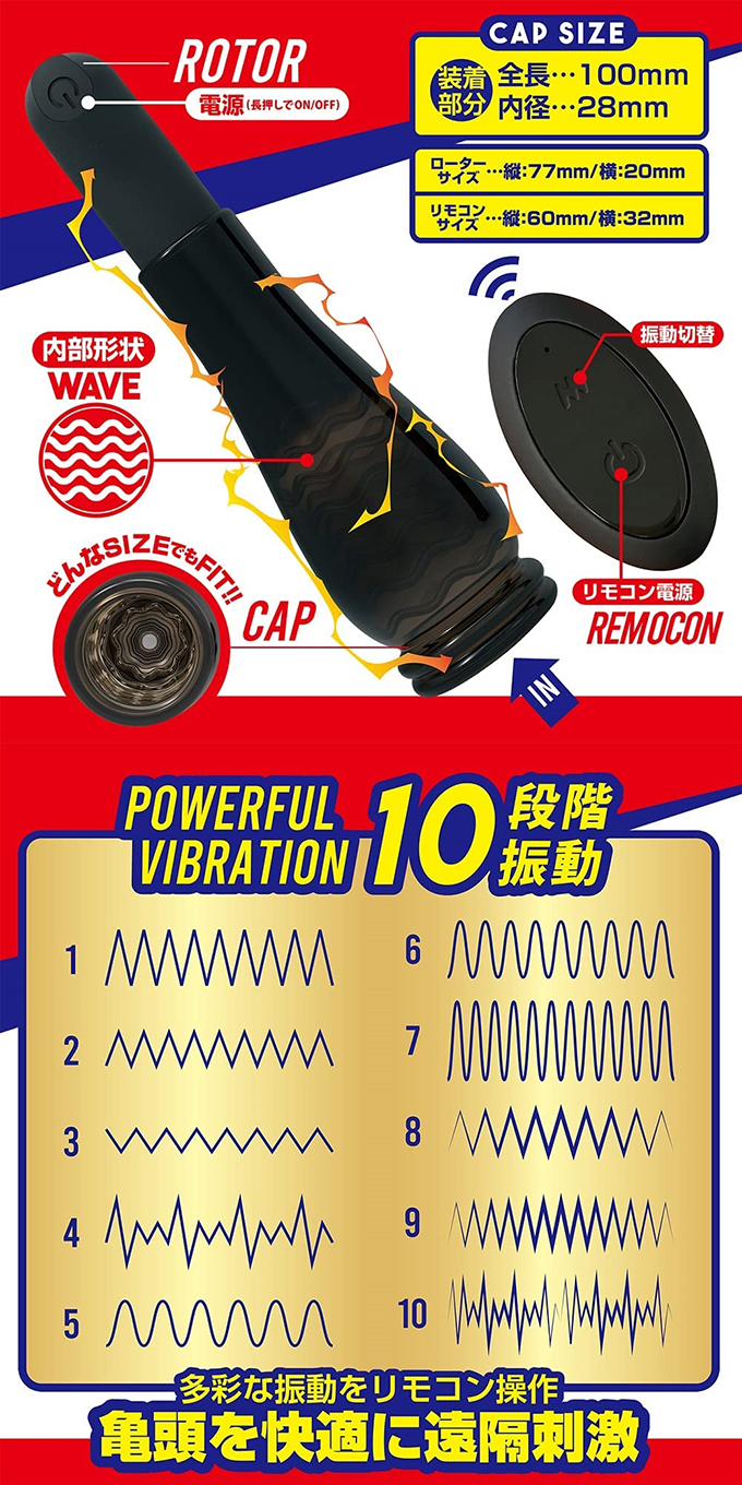 波打つ凹凸のウェーブが、亀頭に密着。先っぽから根元まで、全体にくまなく深い振動を与えます。