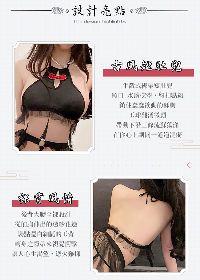 情趣睡衣!綁脖削肩古典流蘇荷葉花邊短上衣薄紗裙分體式兩件組