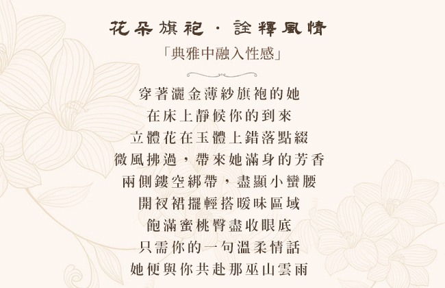 仿旗袍睡衣!立領盤扣挖空露乳側交叉裸空水晶薄紗花朵裙兩件組