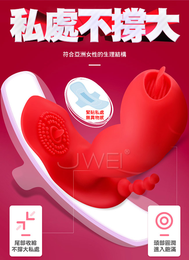 隱形摳動穿戴雙舌雙刺激舌撩蜜豆比普通震動更爽!更猛烈,舌舔摳動G點深入深層刺激。後庭浪珠肛塞也能一起爽喔~隨時隨地隱形貼合雙馬達強震摳動7種模式看得見的速度與激情。符合亞洲女性的生理結構私處不撐大~