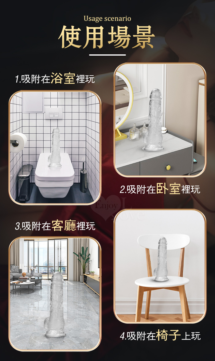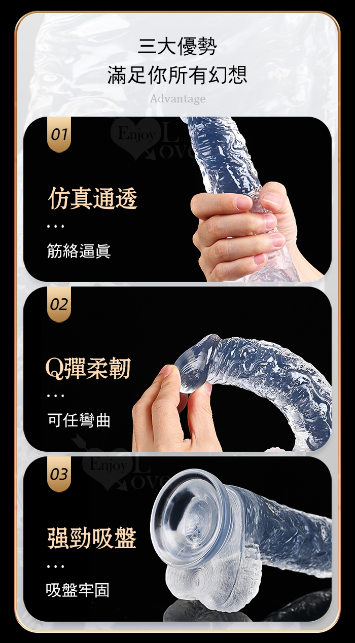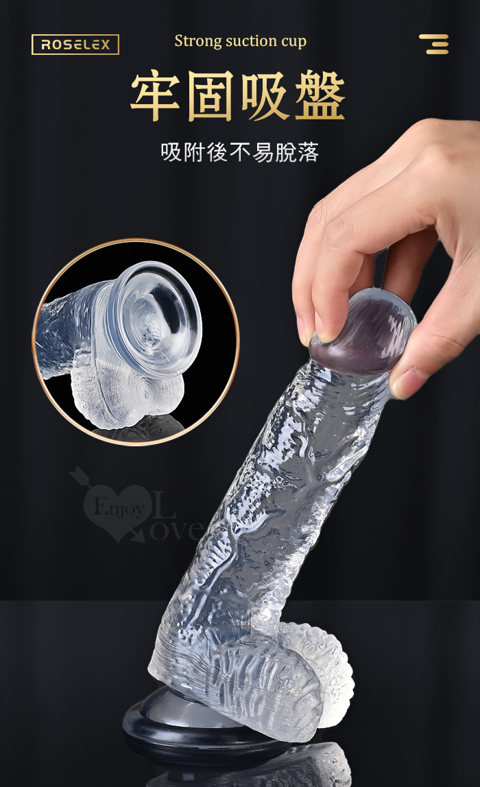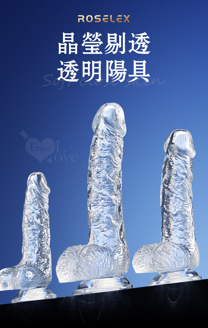 ROSELEX 勞樂斯 ‧ 不僅好看也要好用 逼真筋絡 Q韌彈軟 牢固吸盤 透明水晶老二棒﹝中﹞
