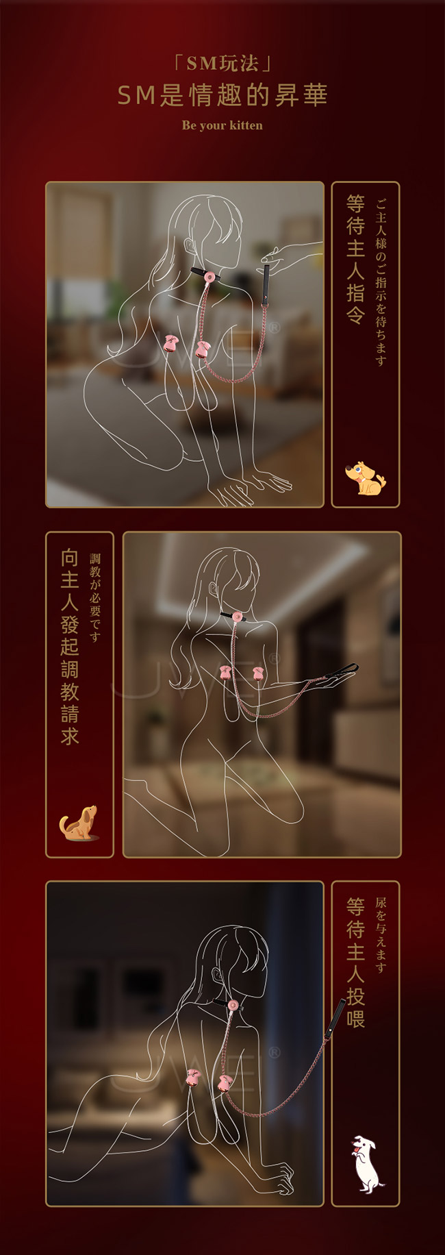 「希婭調教系列」希婭項圈做你多樣小猫,SM新玩法,乳夾+項圈「多樣玩法」懲罰 與酷刑多配件接入,金屬牽引繩「兩種牽引方法」前後可牽,與主人靈魂連接,忠誠 牢固的關係,雙倍快樂;「乳夾玩法」禁錮乳頭,强震懲罰,扣上夾具震動調至三檔 ,這是對你的懲罰!