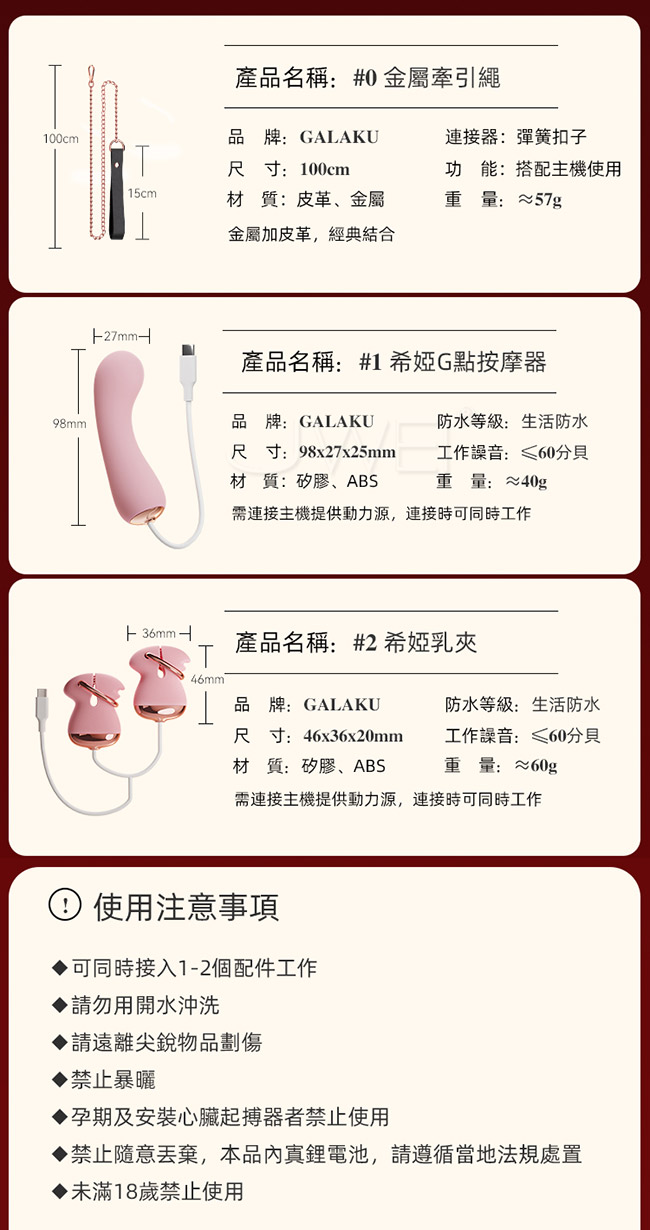 | GALAKU.希婭項圈AIR主機+金屬牽引繩+可調節雙震乳夾-粉