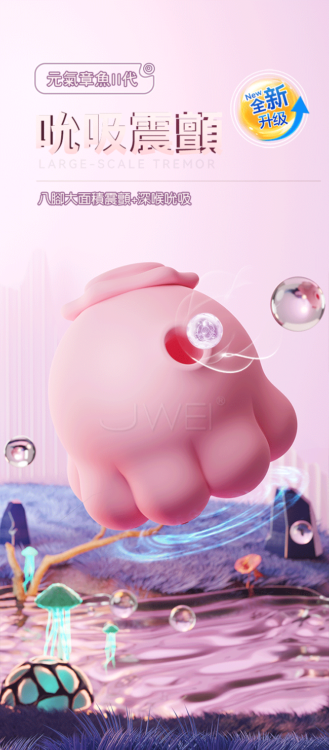 元氣章魚II代,八腳大面積震顫+深喉吮吸;全新震動設計,10頻震動,八腳大覆蓋面震動 ,螺旋紋理按摩強震 ,穿透性強震直達G點;10頻吮吸,嘟嘟嘴親吻吮吸;加速升溫,螺旋紋理結構循環加溫,大面積人體恆溫,冬天更好用;生活防水,可邊洗澡邊享受刺激。