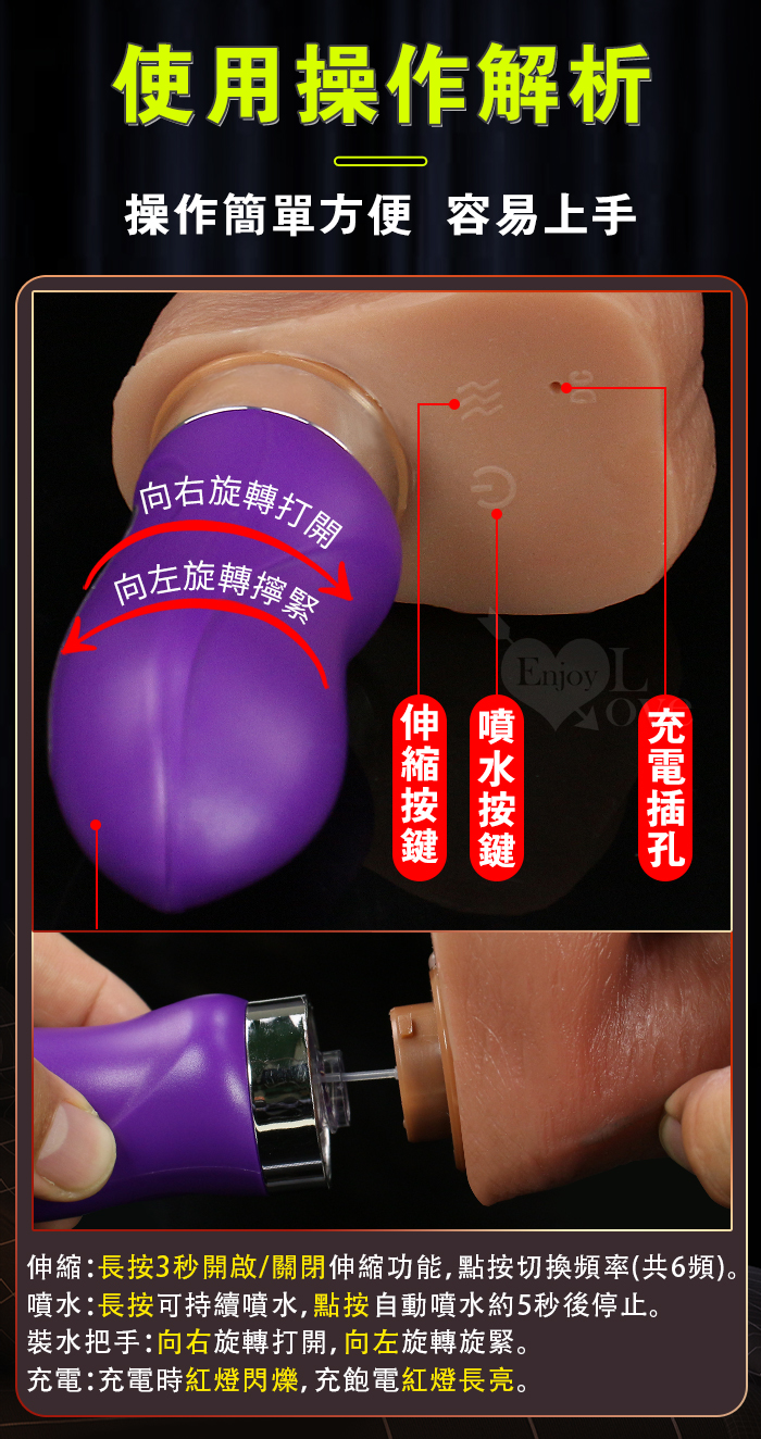 ►您現在的位置:首頁>Squirt 噴水肉莖 ‧ 6段伸縮衝撞/一鍵自動噴湧/擬真凸筋/USB充電 真肉感按摩老二棒