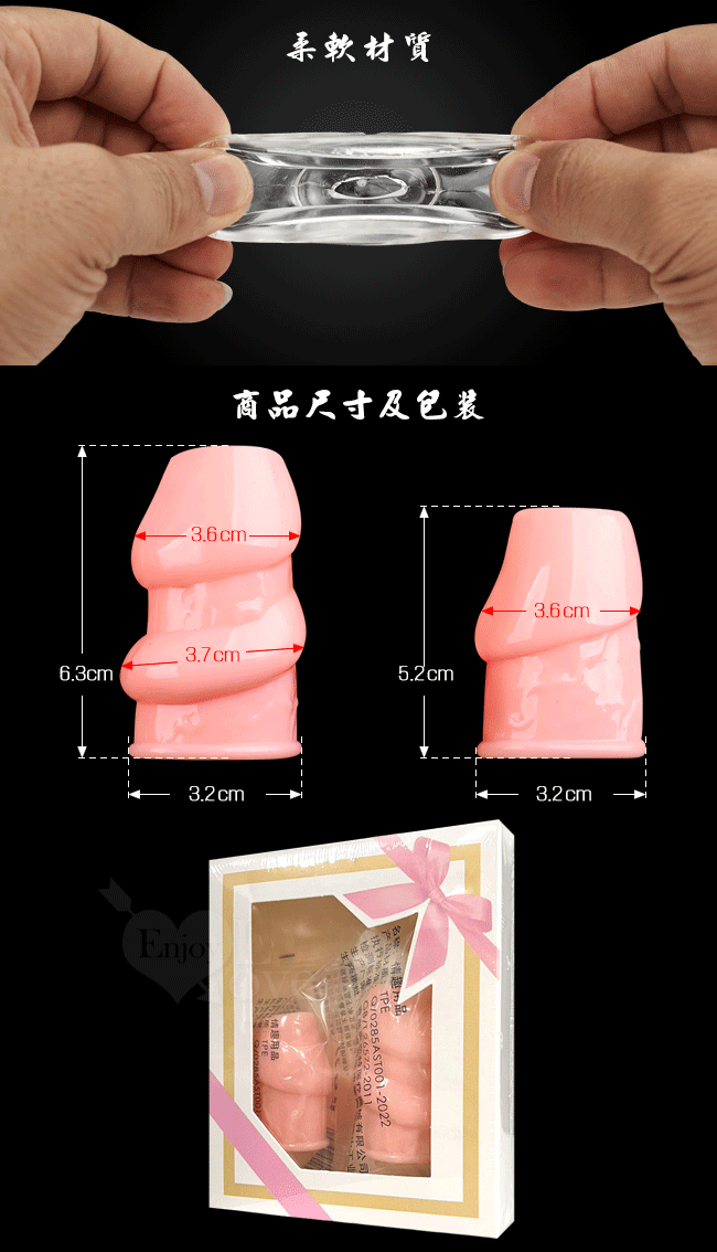 Enjoy Love ‧ 露頭雙龜頭套 - 彈性包龜延時加強套環 膚色﹝增粗刺激~減低敏感度~愛愛更持久﹞大小2只裝