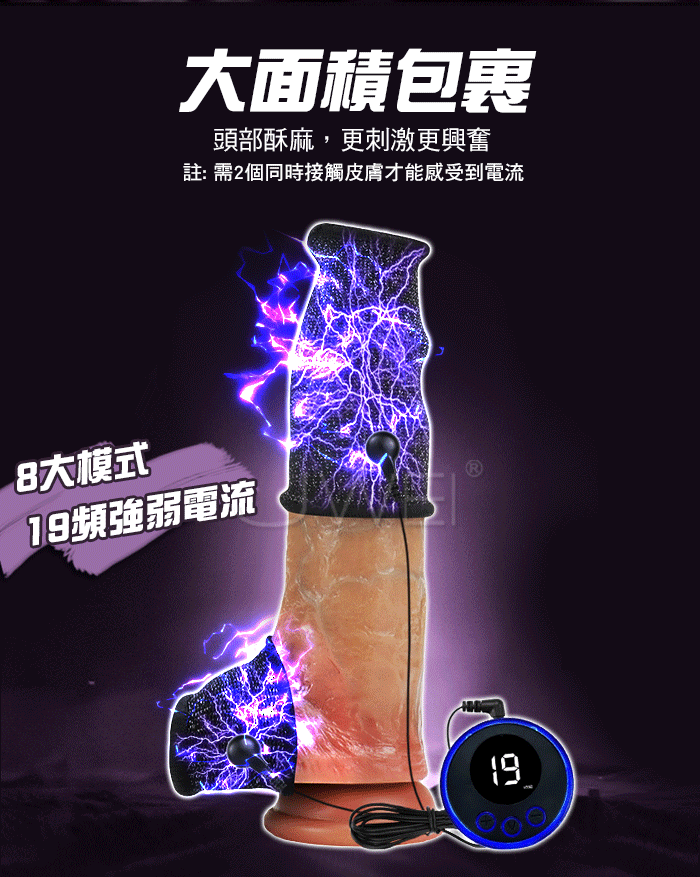 電擊刺激 大面積包裹 多頻電流刺激 輕鬆掌握快感 產品規格 ■尺寸:大小詳如圖片標示 ■供電: 遙控器 CR2025鈕扣型*1,連接盤 USB充電 ■材質:彈力纖維 ■特色:8種模式、19頻強弱電流