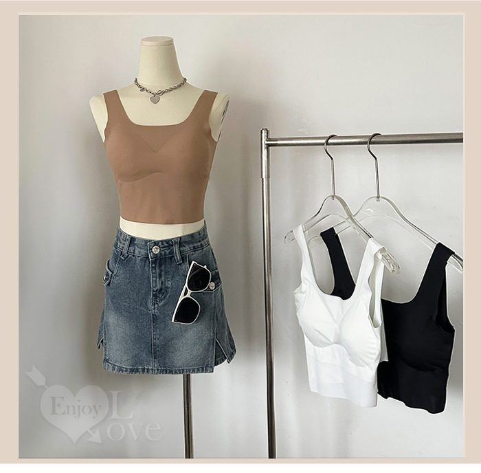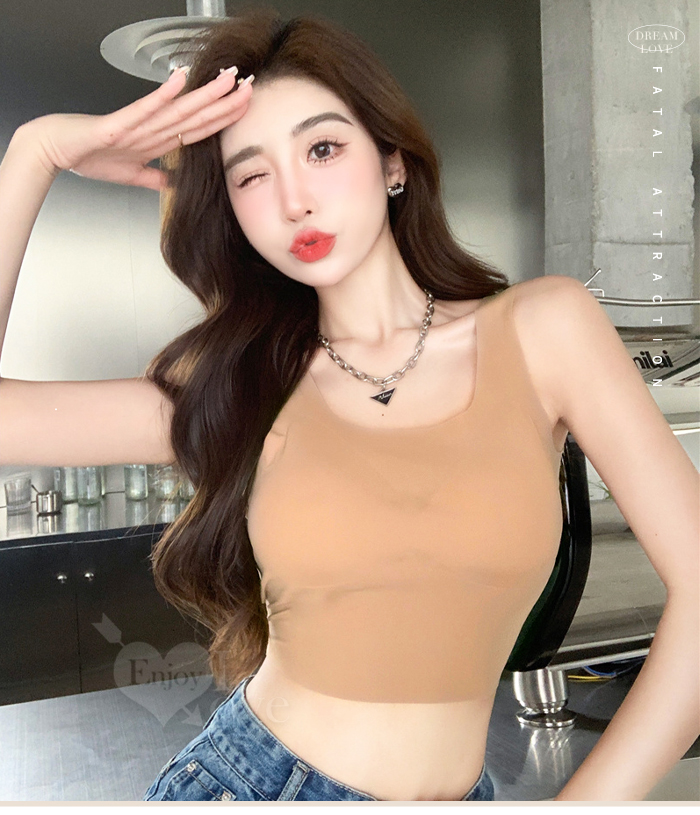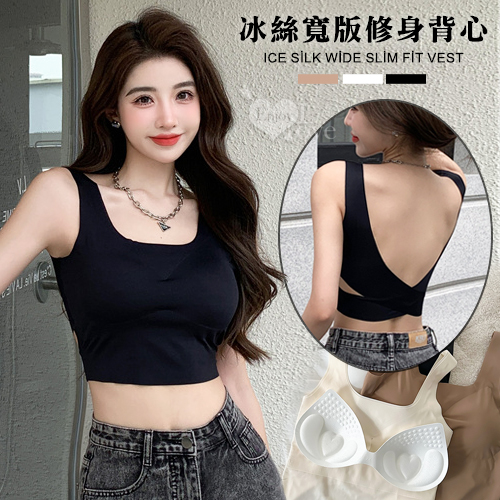 冰絲柔滑寬版肩帶修身裹胸背心﹝黑﹞