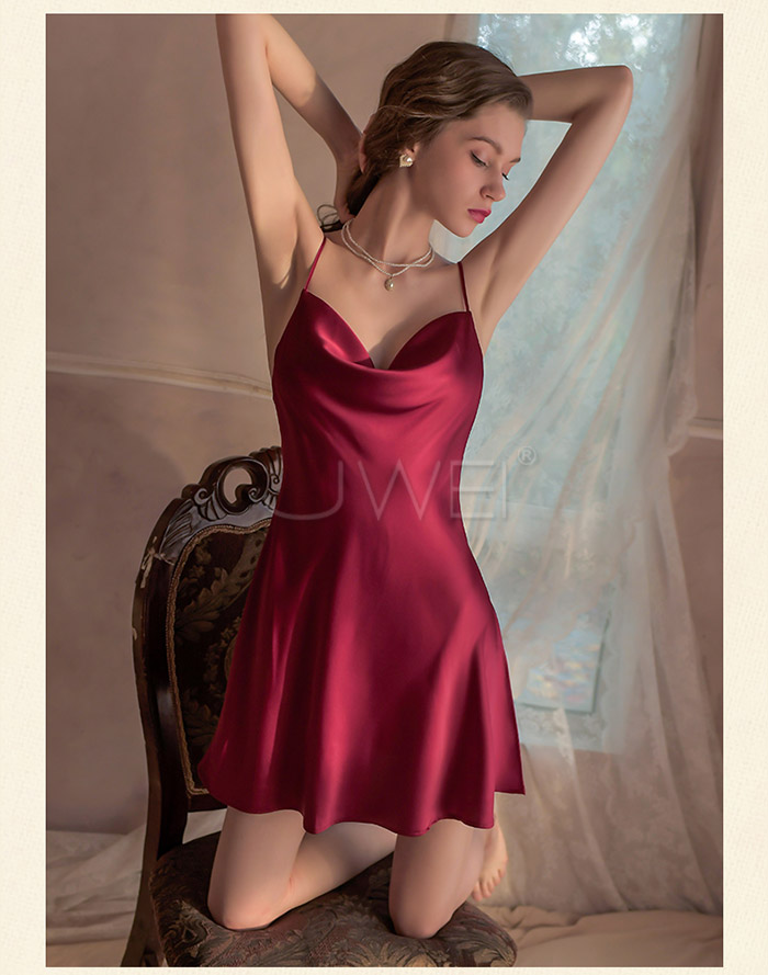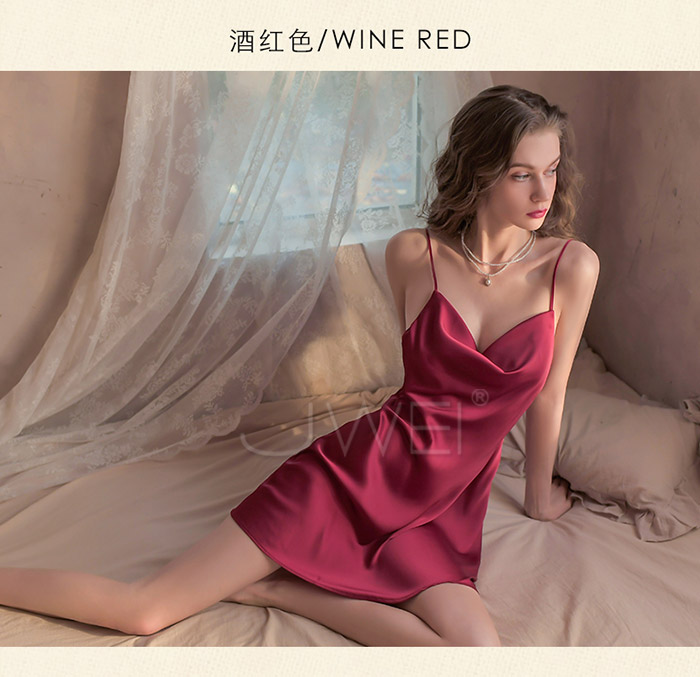 ►您現在的位置:首頁>夢夜微光.綢緞絲滑性感吊帶網紅堆堆領睡衣-酒紅色