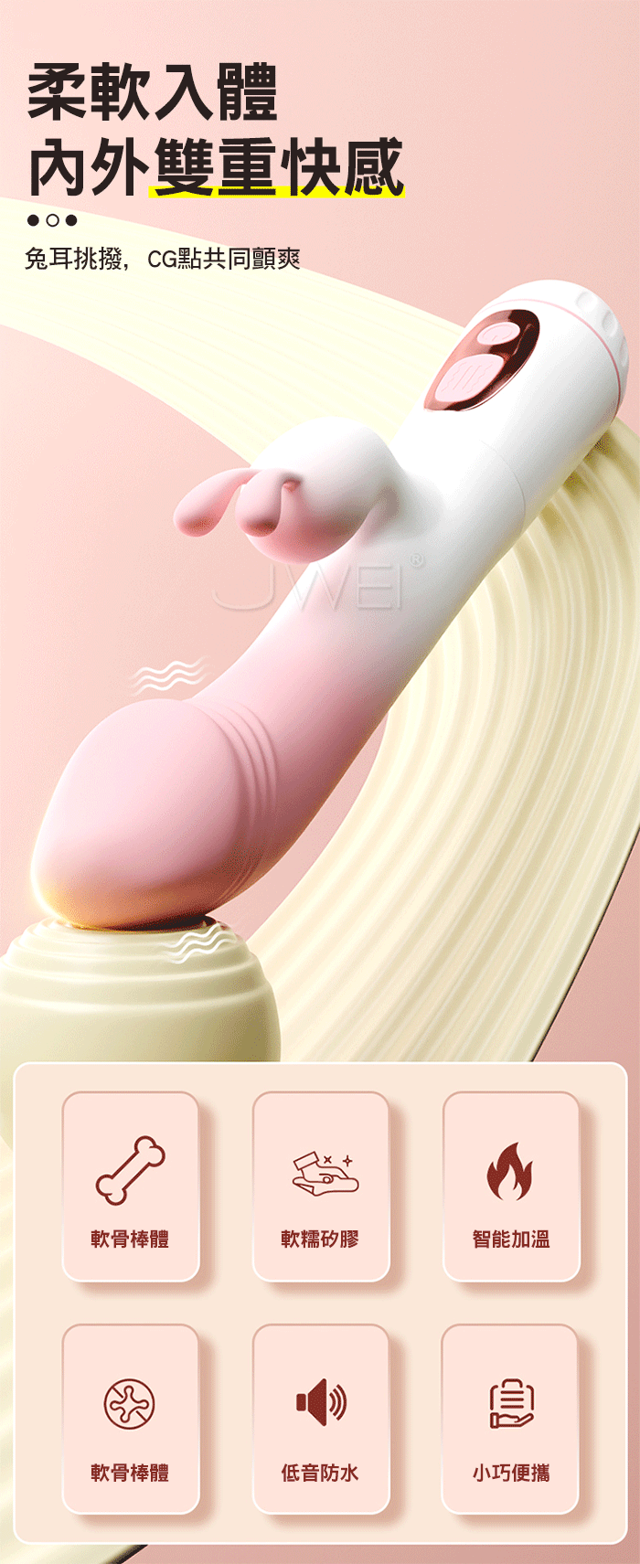 小仙女.內外刺激雙馬達G點加溫按摩棒(兔耳撩撥+10頻激震+柔軟任彎+USB充電)漸層夢幻粉