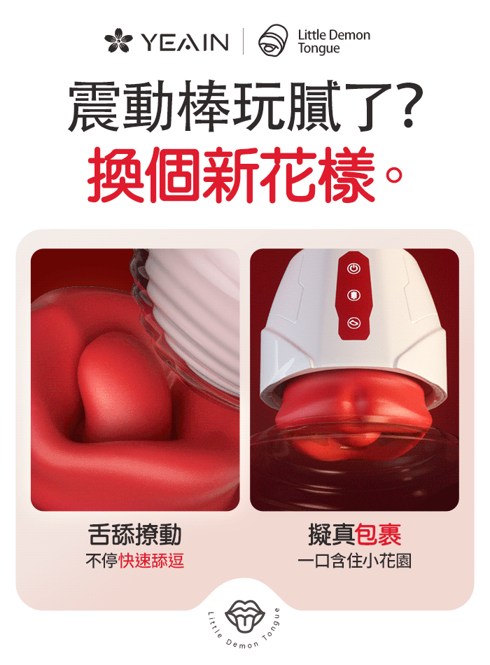 ►您現在的位置:首頁>YEAIN夜樱 ‧ 魔舌 舌舔撩動+強悍震動多功能按摩器﹝10頻舌擺+10頻震動~能舔能震雙享受﹞