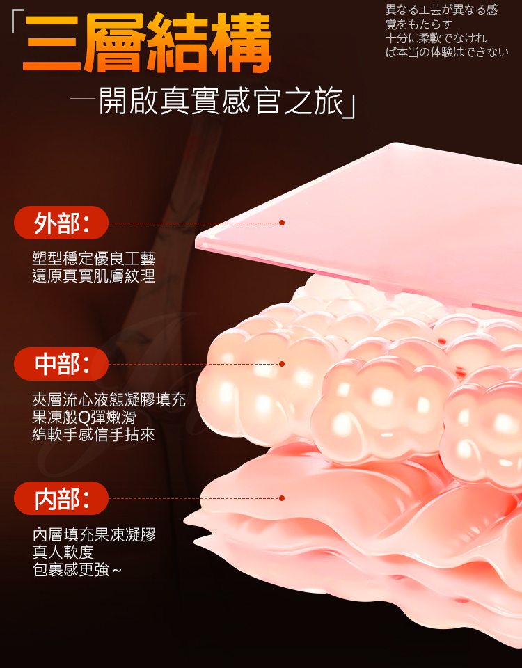 內部:內層填充果凍凝膠,真人軟度包裹感更強~