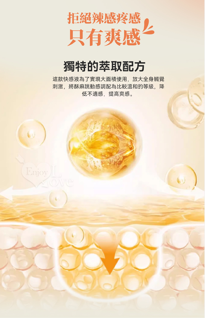 • 融合了酥麻跳動快感液, 口交液以及潤滑液三效合一;