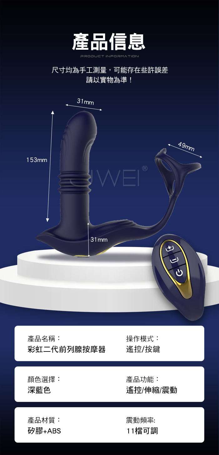 ►您現在的位置:首頁>彩虹II代.11頻強震智能伸縮頂撞 鎖精固陽 銷魂後庭前列腺按摩器