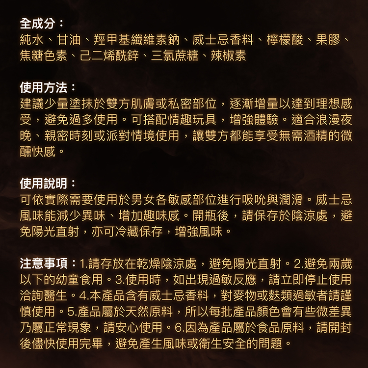 首頁>台灣Play&Joy【威士忌風味 】口交潤滑液 可舔食 50ml