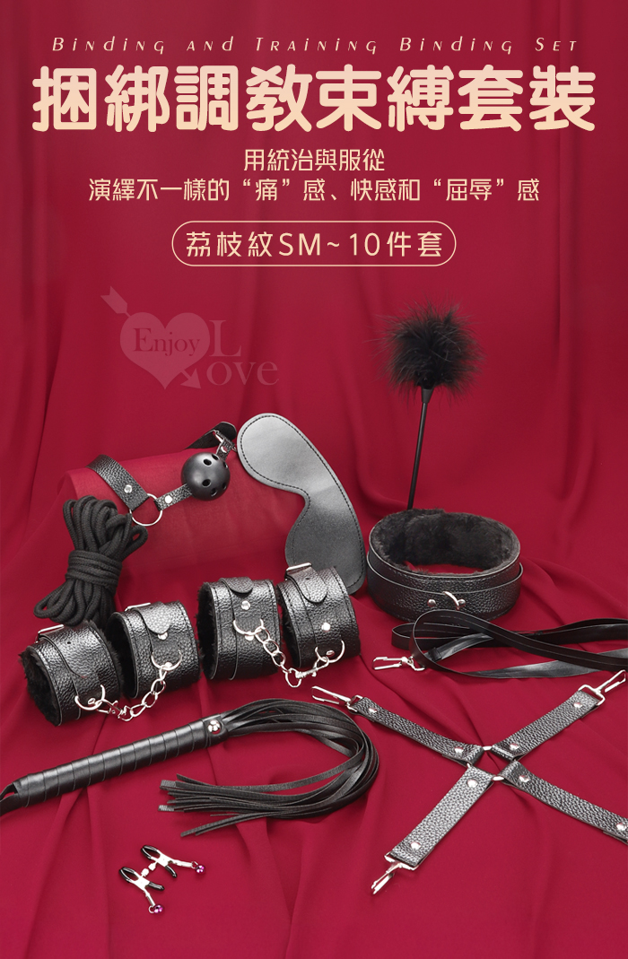 | SM遊戲套組 ‧ 綑綁束缚調教 ~ 荔枝紋皮革/毛絨道具10件組﹝粉﹞