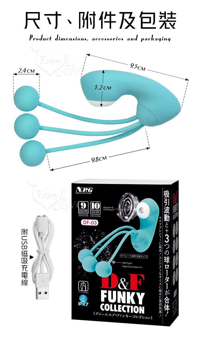 透過震動和吸吮,即可直接刺激陰蒂, 帶來吸力波的快感。擁有三個球體的多功能震動器! ■日本原裝進口,品質優良。 ■外盒尺寸:16.4×11.6×5cm。 ■產品尺寸:如圖所示。 日文簡述: 振動と吸引によりクリトリスを直接刺激することができます。 吸引波の快感をお届けします。 3つの球体が付いた多機能バイブレーター!