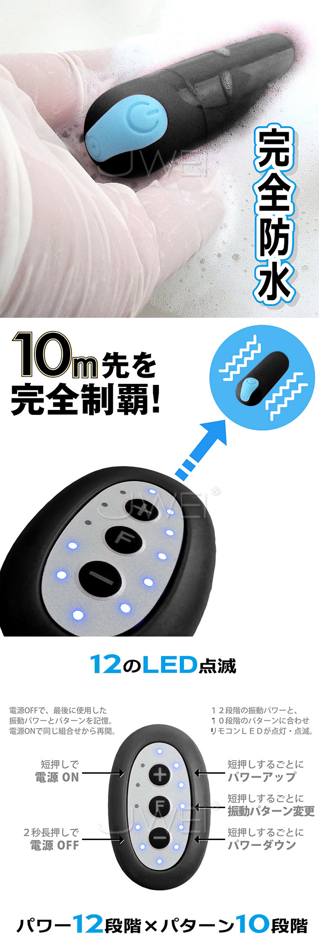 12段階の振動強弱調節が出来るだけでなく、