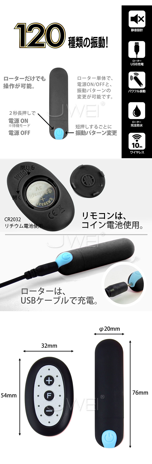 二種類の合わせると、なんと120通りの振動種類!!それぞれ、