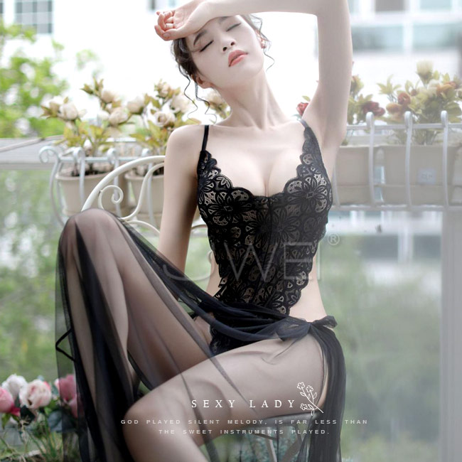 | 夜闌私語.深V露溝花蔓蕾絲修身暗釦開襠連體衣【紫色】